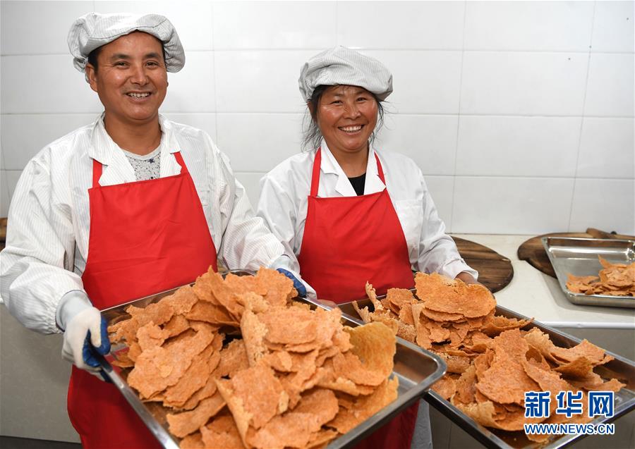 今年49歲的汪明祥和47歲的姚新花是安徽省涇縣黃村鎮(zhèn)沙元村的一對農(nóng)民夫妻。2013年,汪明祥突發(fā)疾病花光了家里的積蓄,并喪失了一定的勞動能力。2014年,汪明祥一家被確定為建檔立卡貧困戶。為了靠自己的雙手實(shí)現(xiàn)脫貧,汪明祥和妻子姚新花在家里開始生產(chǎn)手工鍋巴,雖然收入不高,但是經(jīng)濟(jì)狀況慢慢好轉(zhuǎn)起來,于2016年順利實(shí)現(xiàn)脫貧。脫貧后的夫妻倆開始琢磨如何進(jìn)一步發(fā)展自家的手工鍋巴生意。今年,汪明祥和妻子姚新花利用當(dāng)?shù)胤鲐毿☆~貸款和自籌資金創(chuàng)辦的強(qiáng)源鍋巴廠投產(chǎn)。由于口味地道,價格不高,汪明祥家的鍋巴受到市場的歡迎,平均每天生產(chǎn)鍋巴50余斤,日均銷售額400多元。“不等不靠,甩窮帽,我們夫妻倆靠手藝脫了貧,也有信心實(shí)現(xiàn)致富?!蓖裘飨檎f。