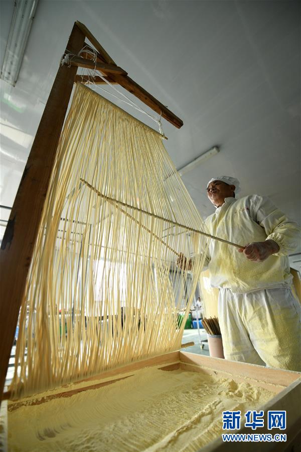 河北石家莊的藁城宮面歷史悠久,因曾進(jìn)貢清朝皇宮而得名。宮面采用手工制作,整個(gè)生產(chǎn)過(guò)程包括和面、開(kāi)條、盤(pán)條、上軸、分面等十幾道工序,以“面細(xì)能穿針,空心有韌性”為特色,食用方便,營(yíng)養(yǎng)豐富。藁城宮面制作技藝于2013年入選河北省級(jí)非物質(zhì)文化遺產(chǎn)名錄。