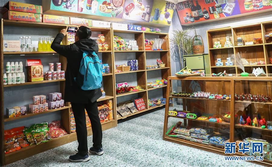 11月23日,一位參觀者在“雜貨鋪”內(nèi)參觀拍照。新華社記者張玉薇攝