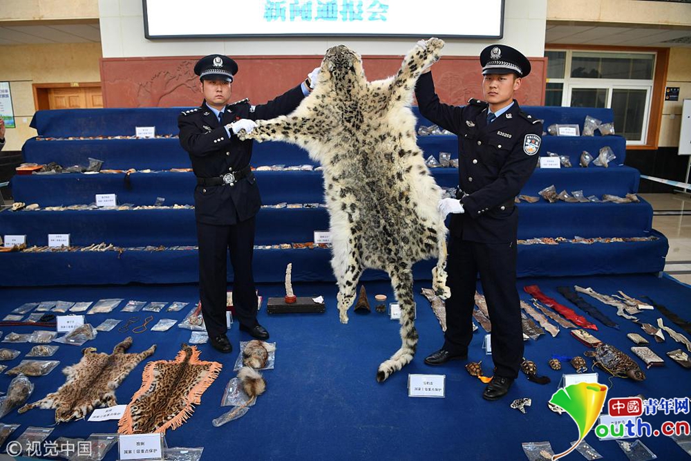 11月23日,現(xiàn)場展示警方查獲的野生動物制品。當(dāng)日,昆明市森林公安局向媒體通報,破獲一系列特大非法收購出售珍貴瀕危野生動物及其制品案件。