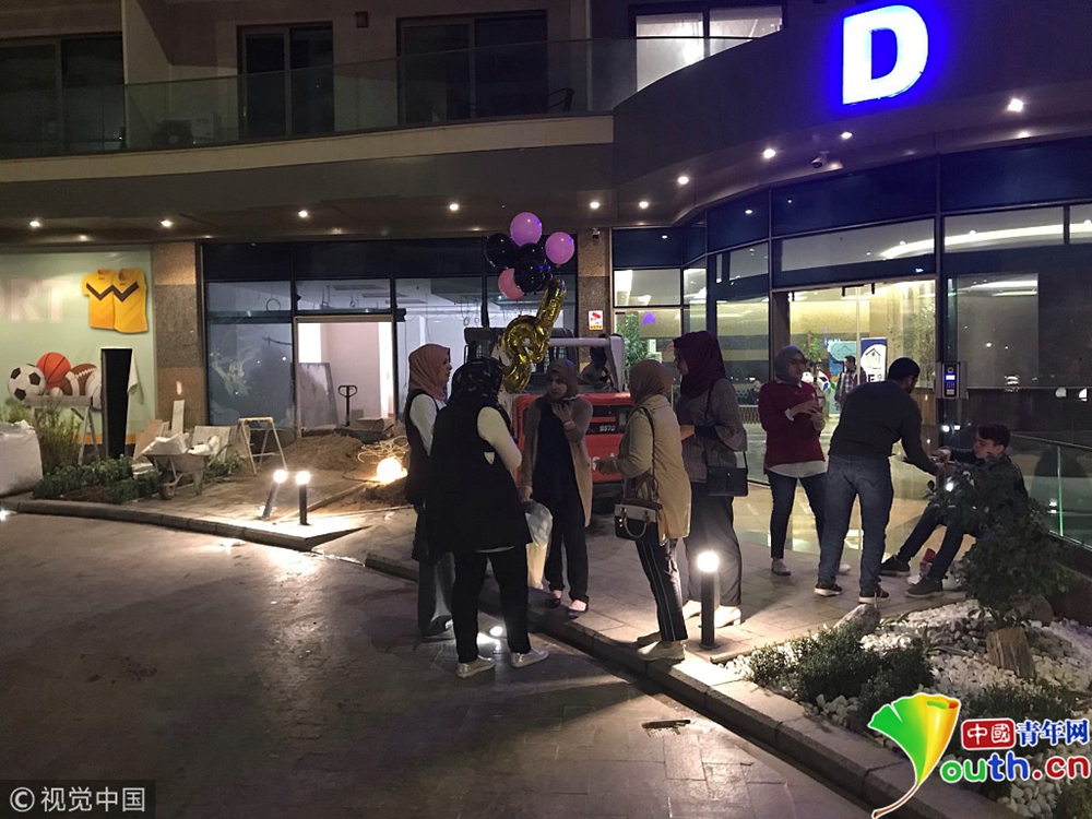 當(dāng)?shù)貢r(shí)間2018年11月25日,伊拉克埃爾比勒,民眾在建筑外避難。伊朗西部克爾曼沙阿省25日發(fā)生6.4級地震。目前尚無人員傷亡和財(cái)產(chǎn)損失報(bào)告。