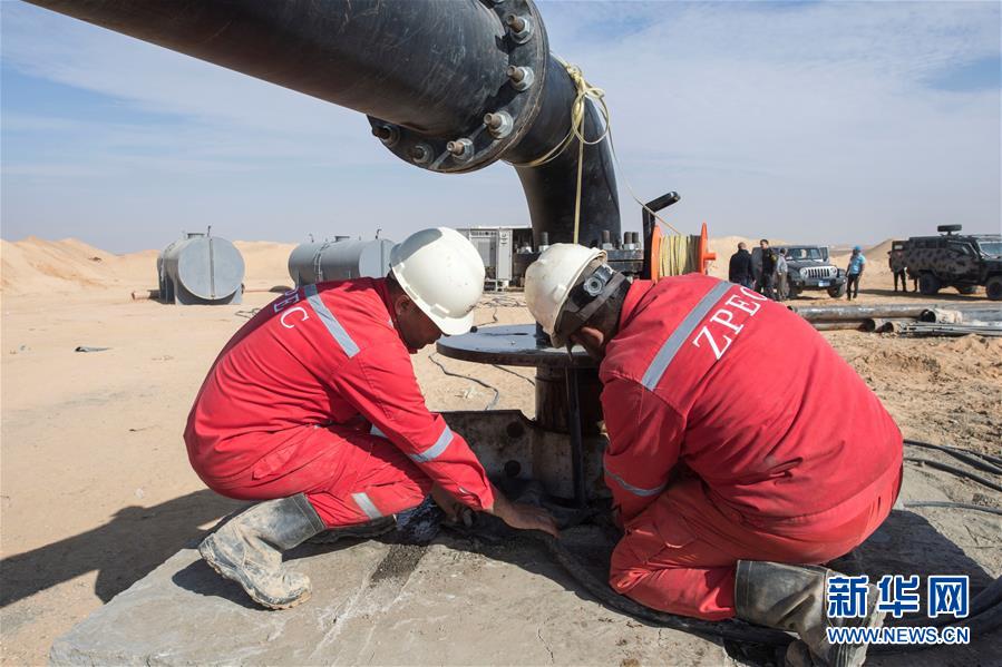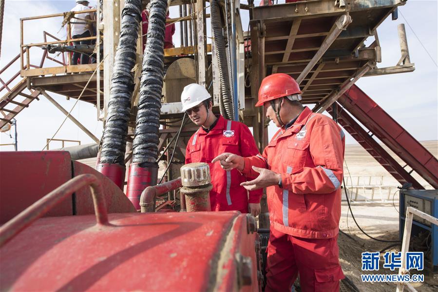 11月20日,在埃及明亞省,中國中曼石油公司的工人在鉆井現(xiàn)場作業(yè)。 2017年,中國中曼石油公司與阿聯(lián)酋海灣集團簽訂合同,為該集團在埃及沙漠中的大型農(nóng)業(yè)項目鉆探300口水井。根據(jù)合同,中曼石油將先期完成30口井的試鉆探,剩余水井將以每月7口的速度交付。目前有超過200名工人在鉆井現(xiàn)場作業(yè),大部分是埃及本地人。 新華社記者李碧念攝