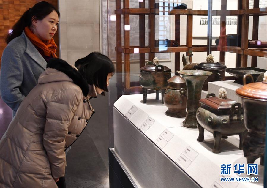11月26日,參觀者在觀看孔子博物館內(nèi)的文物。 當(dāng)日,耗時(shí)5年建成的孔子博物館在孔子故里山東曲阜開館試運(yùn)行,首批2000多件文物搬出孔府文物檔案館,入住孔子博物館,今后將有69萬多件孔府文物逐批“喬遷新居”。 新華社記者 朱崢 攝