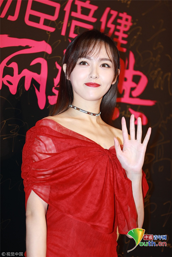 唐嫣紅色紗裙知性溫婉 胸前蝴蝶結(jié)點(diǎn)綴盡顯俏皮