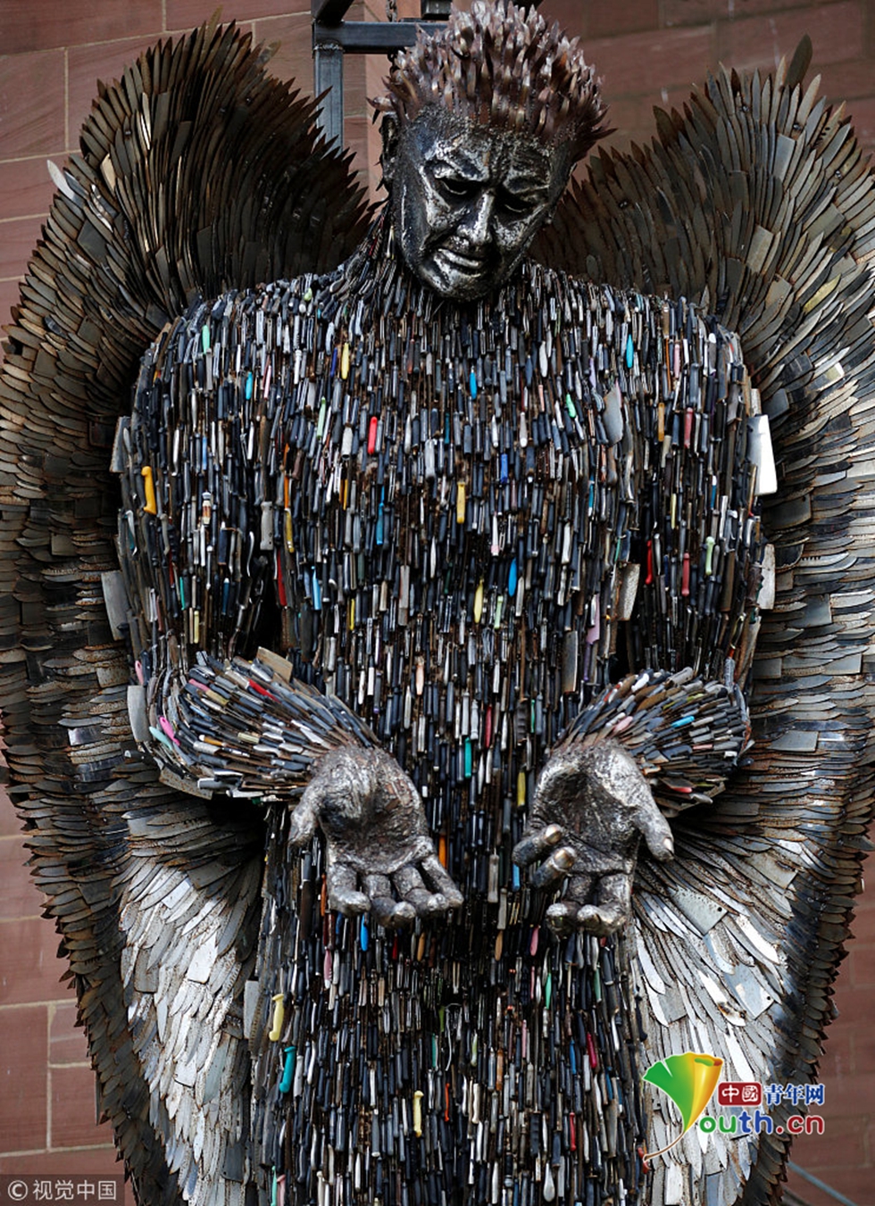 英警察沒收十萬把刀 做成“天使”雕像