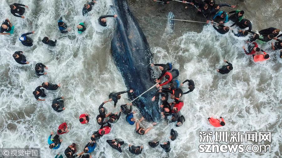 當(dāng)?shù)貢r(shí)間2018年4月9日,阿根廷馬德普拉塔,一條鯨魚(yú)在當(dāng)?shù)睾R淺,雖經(jīng)民眾合力救助仍最終死亡。