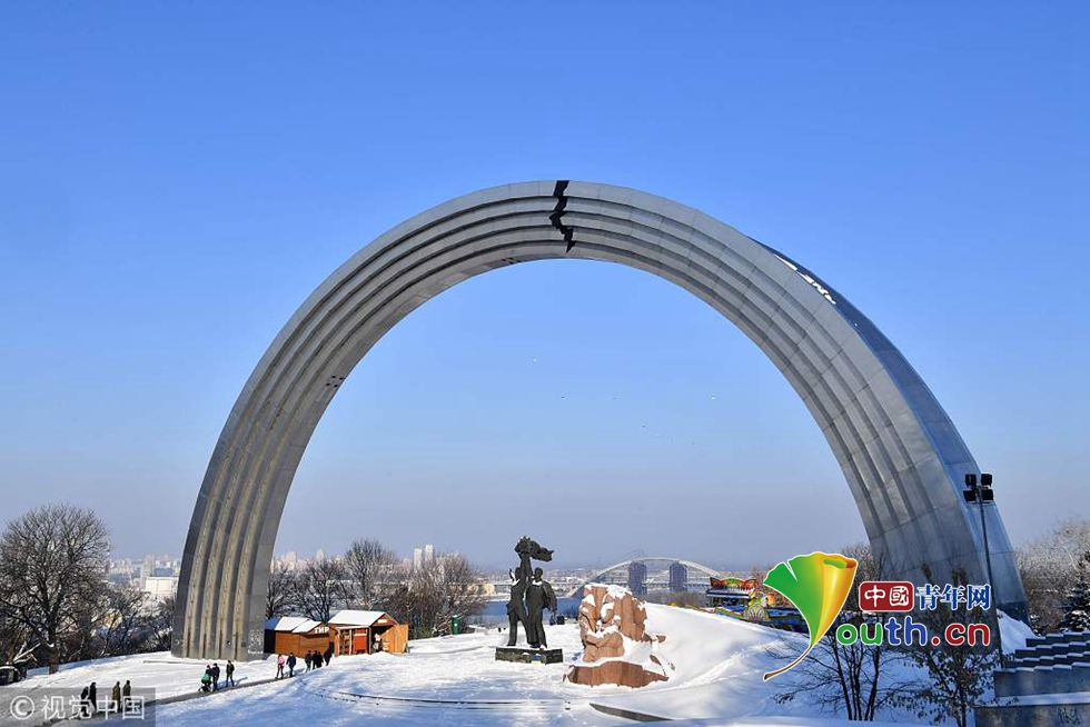 當?shù)貢r間2018年12月2日,烏克蘭基輔,蘇聯(lián)時期象征著烏克蘭和俄羅斯友誼拱形建筑被不知名藝術家添加了一道裂縫。俄烏黑海沖突后,緊張局勢升級,烏克蘭總統(tǒng)波羅申科于26日簽署戒嚴令。按照國家安全與國防委員會的決定,宣布批準烏克蘭全國實施戰(zhàn)時狀態(tài)。
