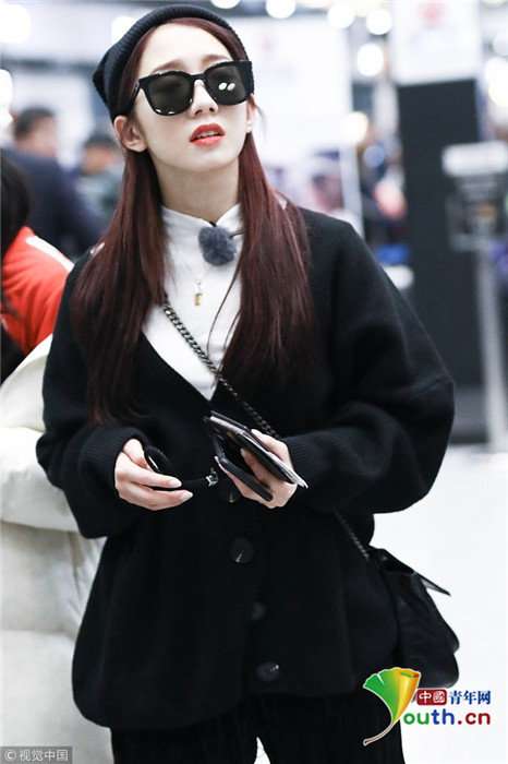 2018年12月3日,北京,“火箭少女101”全體成員現(xiàn)身機場前往國外錄制團總綜。其中孟美岐戴著墨鏡,一身全黑運動裝扮,大步流星氣場超強,楊蕓晴、yamy、楊超越等成員緊隨其后,大家還一起在機場玩起自拍,好不歡樂。