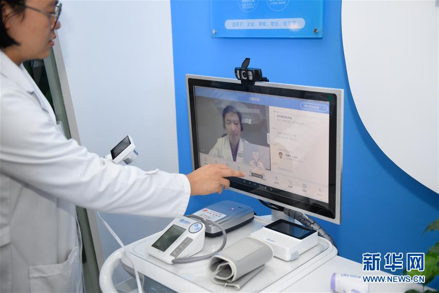 11月6日,烏鎮(zhèn)互聯(lián)網(wǎng)醫(yī)院的員工在操作“智能醫(yī)務(wù)室”與醫(yī)生的視頻連線功能。據(jù)了解,“智能醫(yī)務(wù)室”由智能移動醫(yī)療一體機(jī)、智能藥柜以及一系列檢查設(shè)備組成,根據(jù)健康檔案和檢查結(jié)果,視頻連接家庭醫(yī)生就能解決常見的醫(yī)療健康問題。 新華社記者黃宗治攝