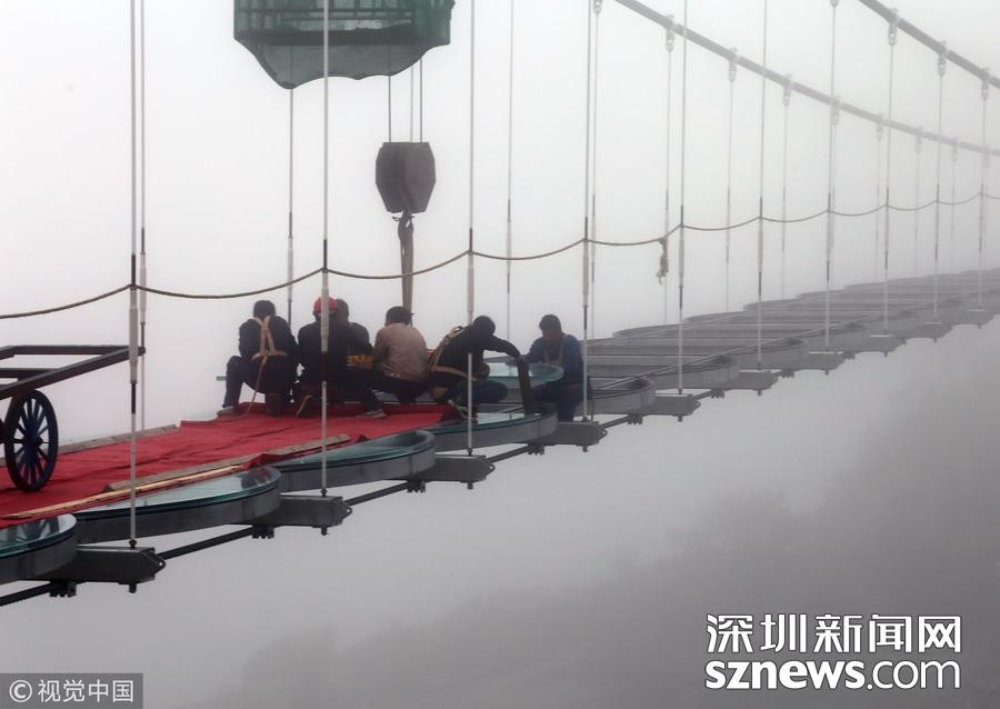 恐高勿進(jìn)!玻璃橋這樣鋪成!