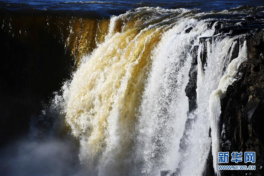 12月5日,游客在觀賞吊水樓瀑布。 受上游來水量大和近期氣溫偏高等因素影響,位于黑龍江東南部的火山堰塞湖——鏡泊湖的吊水樓瀑布水量充沛,展現(xiàn)出飛流直下、水霧升騰的冬季奇觀,引來許多游人觀賞。 新華社記者王建威攝