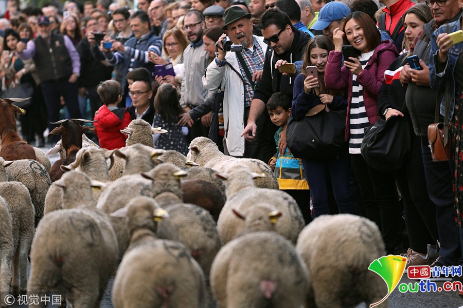 牧羊人驅趕成百上千只綿羊穿越馬德里市街。