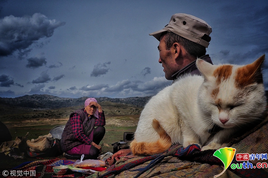 哈薩克族牧民整理行裹準(zhǔn)備遷徙。