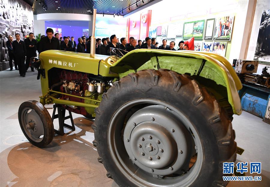12月10日,觀眾在參觀廣西柳州20世紀(jì)60年代試制成功并生產(chǎn)的拖拉機。 當(dāng)日,廣西壯族自治區(qū)成立60周年大型成就展在位于南寧的廣西規(guī)劃館開幕。 新華社記者 周華 攝