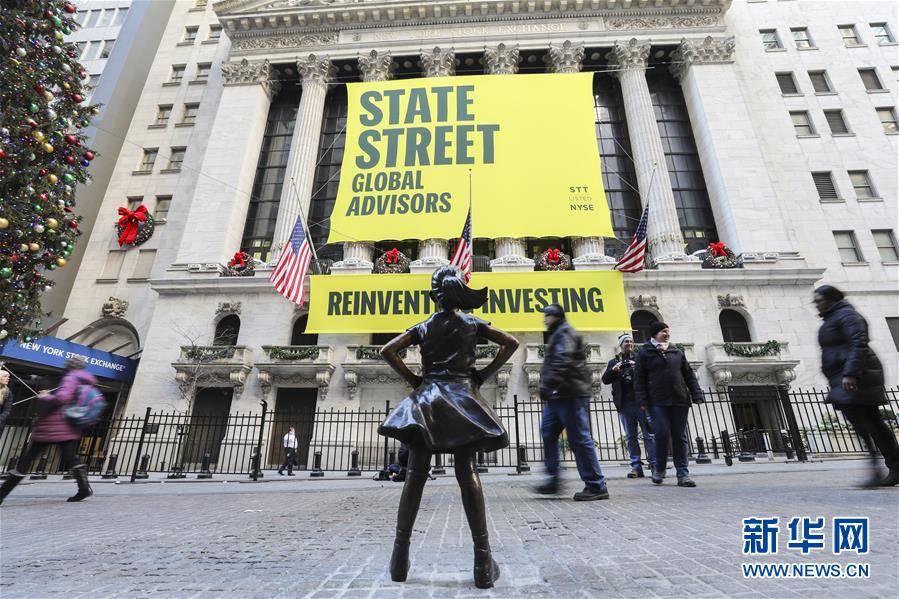 這是12月10日在美國紐約證券交易所前拍攝的“無畏女孩”銅像。