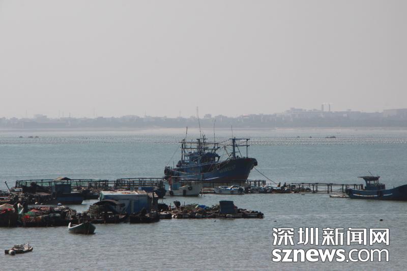 從遠(yuǎn)處望去,漁民們賴以為生的船只并排放著,船頭指向高樓林立的城區(qū)。 施冰冰攝