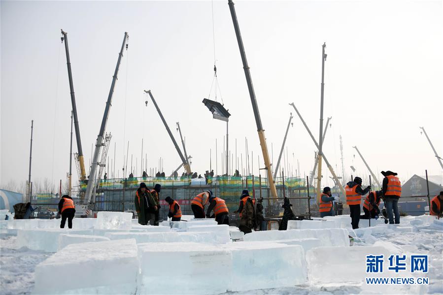 目前,以“筑夢(mèng)冰天雪地,共享金山銀山”為主題的第二十屆哈爾濱冰雪大世界正在施工,現(xiàn)場(chǎng)一片繁忙景象。 新華社記者 王建威 攝