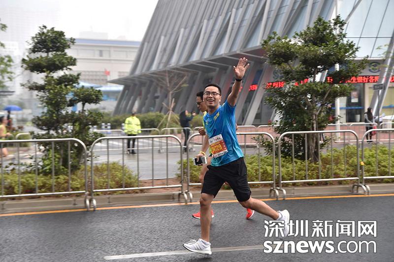 2018年12月16日訊(記者楊浩瀚)2018年12月16日,深圳國際馬拉松位于后海的折返點(diǎn),一名選手向鏡頭招手。