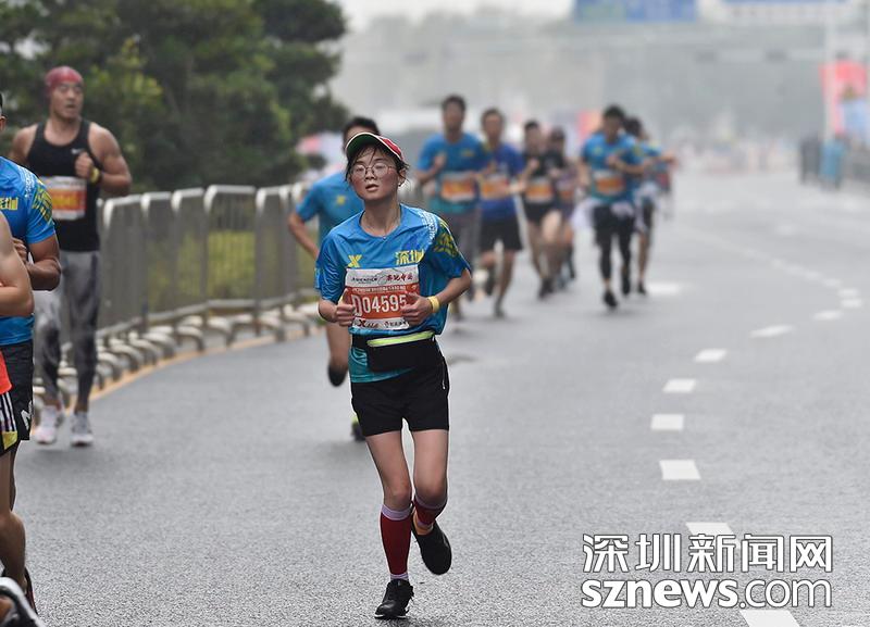 2018年12月16日,深圳國際馬拉松位于后海的折返點(diǎn),一家三口都參與了本次比賽,正向目標(biāo)沖刺。