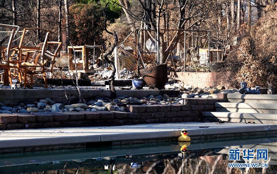 這是12月7日在美國加利福尼亞州比尤特縣天堂鎮(zhèn)拍攝的山火廢墟。 新華社記者吳曉凌攝