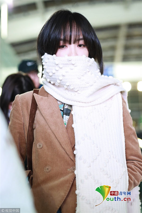 2018年12月16日,宋茜從上海機(jī)場飛往北京機(jī)場。她身穿短款薄外套,搭配破洞牛仔褲,要風(fēng)度不要溫度,一路低頭前行悶悶不樂似遇愁心事,到了北京之后她又裹起了厚圍巾,但依舊悶悶不樂。