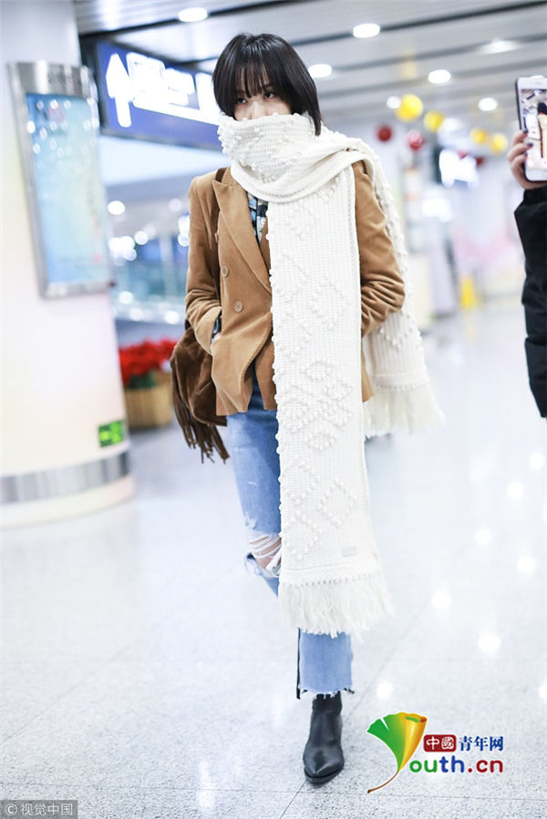 2018年12月16日,宋茜從上海機(jī)場飛往北京機(jī)場。她身穿短款薄外套,搭配破洞牛仔褲,要風(fēng)度不要溫度,一路低頭前行悶悶不樂似遇愁心事,到了北京之后她又裹起了厚圍巾,但依舊悶悶不樂。