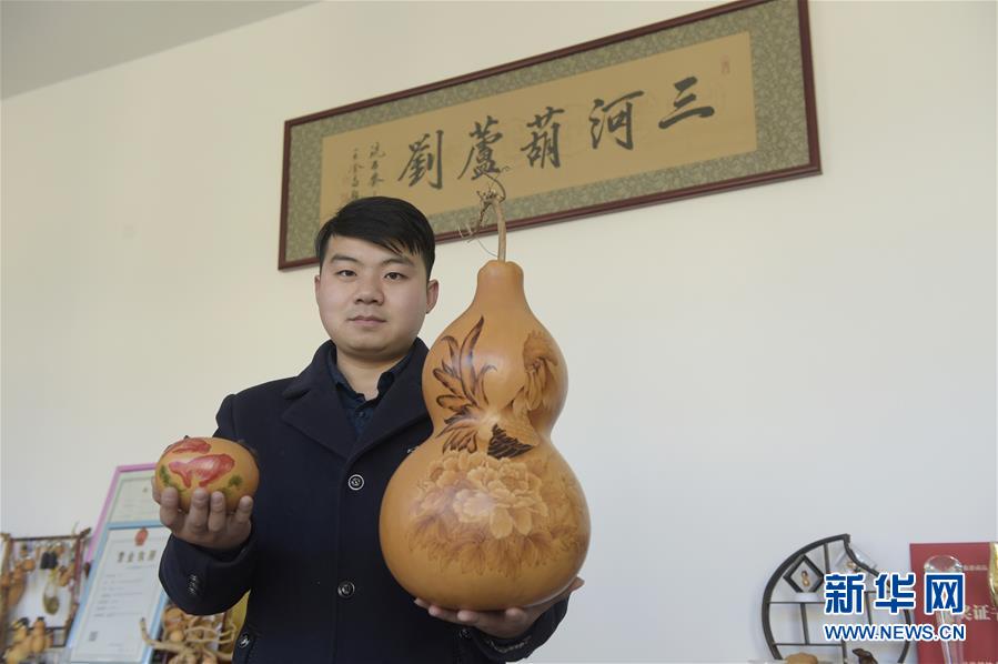 2014年,劉征從北京工商大學畢業(yè)后,曾從事過一段時間旅游產業(yè)方面的工作。2015年他回鄉(xiāng)創(chuàng)業(yè),致力于葫蘆烙畫創(chuàng)作和葫蘆衍生品的開發(fā)。如今,劉征不僅注冊了自己的葫蘆衍生品商標,還和同學組建團隊共同創(chuàng)業(yè),業(yè)務內容涵蓋從葫蘆種植、加工到銷售的全流程,著力打造個性化訂制等特色產品。目前,劉征和他的團隊已銷售葫蘆創(chuàng)意產品超過1萬件,客戶超過1000人,部分創(chuàng)意產品還遠銷到海外市場。