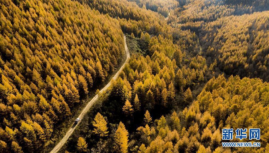 2018年10月8日,一輛汽車行駛在山西省沁源縣好地方林場(chǎng)的林間道路上。 大地之色,俯仰之間;壯美山河,是我的祖國(guó)。2018年,新華社記者操縱無(wú)人機(jī)“飛閱”華夏大地,在最美的時(shí)節(jié),定格下她的色彩斑斕。 新華社記者 陶明 攝