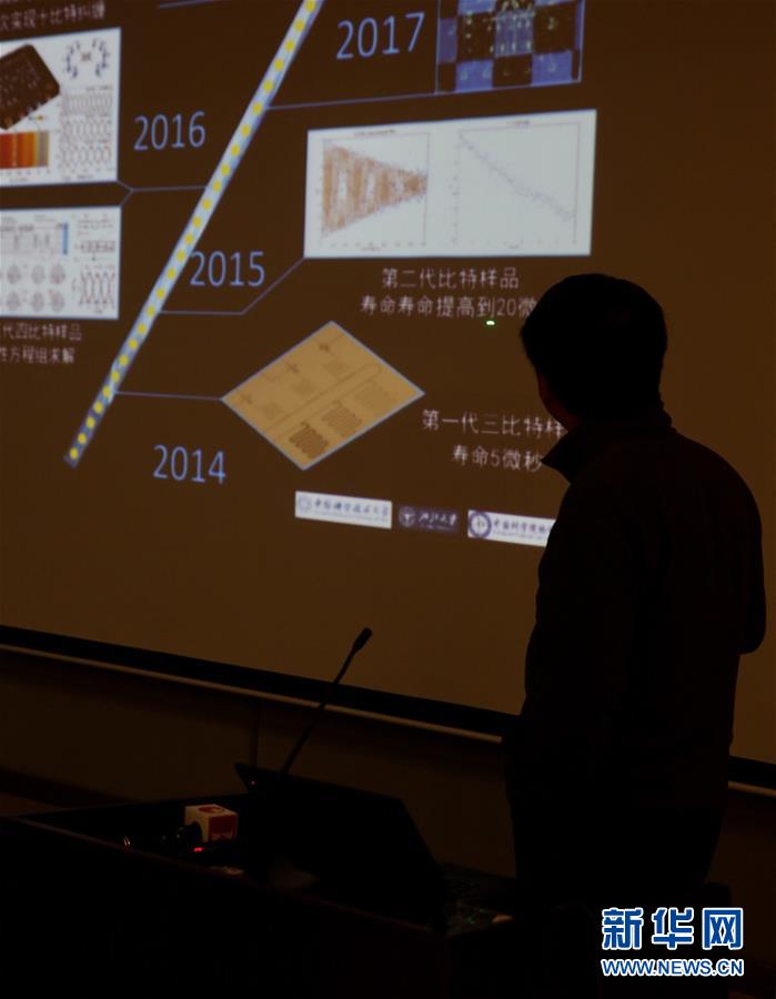 2017年5月3日,中國(guó)科學(xué)技術(shù)大學(xué)潘建偉院士在上海宣布,我國(guó)科研團(tuán)隊(duì)成功構(gòu)建的光量子計(jì)算機(jī),首次演示了超越早期經(jīng)典計(jì)算機(jī)的量子計(jì)算能力。這是潘建偉院士在介紹“超導(dǎo)量子計(jì)算機(jī)路線(xiàn)圖”。 新華社記者 金立旺攝