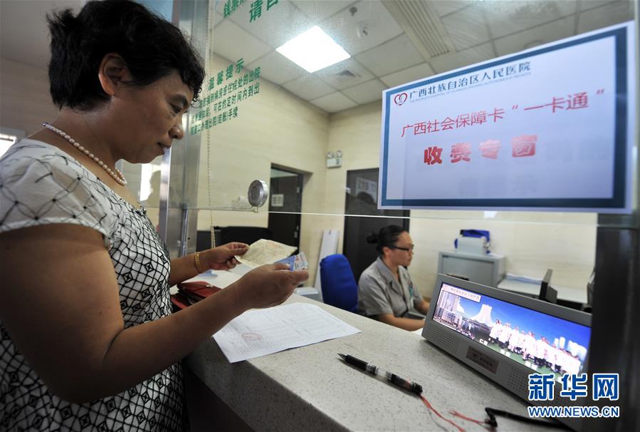 在廣西壯族自治區(qū)人民醫(yī)院,從北海到南寧異地就醫(yī)的鄭曉榮持社會保障卡在結(jié)算醫(yī)藥費(2015年6月30日攝)。 歷史進步的背后,必有堅強領(lǐng)導力量的引領(lǐng)。 “堅持黨的領(lǐng)導,全面從嚴治黨,是改革開放取得成功的關(guān)鍵和根本。”習近平總書記總結(jié)改革開放40年歷史和實踐作出這一重要論斷。 歷史關(guān)頭,中國共產(chǎn)黨的關(guān)鍵抉擇,改變了當代中國的命運; 宏偉征程,中國共產(chǎn)黨帶領(lǐng)億萬人民在改革開放實踐中,實現(xiàn)歷史性跨越; 面向未來,中國共產(chǎn)黨肩負實現(xiàn)中華民族偉大復興的歷史使命,把改革開放繼續(xù)推向前進。 新華社記者李斌攝