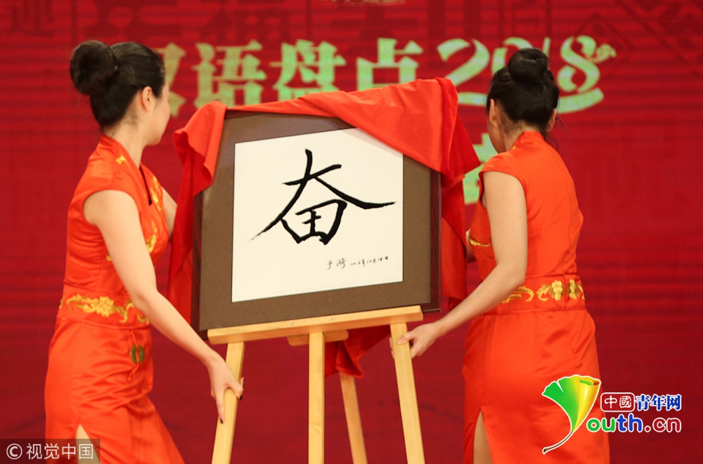 12月20日,國家語言資源監(jiān)測與研究中心、商務(wù)印書館、央視新聞等單位聯(lián)合舉辦的“漢語盤點(diǎn)2018”揭曉儀式在北京舉行。圖片來源:視覺中國