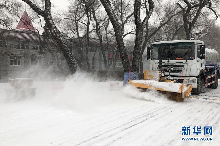 12月21日,清雪車輛在哈爾濱城區(qū)一條道路進(jìn)行清雪作業(yè)。當(dāng)日,“冰城”哈爾濱迎來降雪天氣,整個城市變得銀裝素裹。新華社記者曹霽陽攝