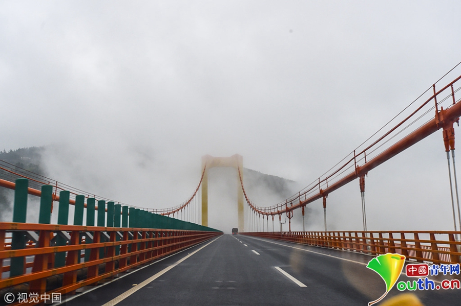 從貴州往云南方向前行十多公里,進(jìn)入云南界普立大橋一頭,有關(guān)部門在高速公路旁開辟一塊平地,專門設(shè)置觀光臺(tái),讓游客有機(jī)會(huì)停車駐足觀賞變幻多端的云海。圖片來源:視覺中國(guó)