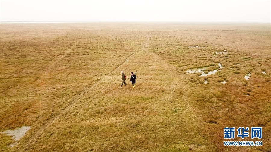 12月22日,王三益(右)和生態(tài)保護(hù)協(xié)會(huì)成員江軍在菜子湖濕地進(jìn)行越冬候鳥巡護(hù)(無人機(jī)拍攝)。每年10月開始,候鳥遷徙至菜子湖,次年3月飛回北方,期間王三益會(huì)和協(xié)會(huì)成員開展越冬候鳥巡護(hù)以及清理濕地灘涂垃圾。