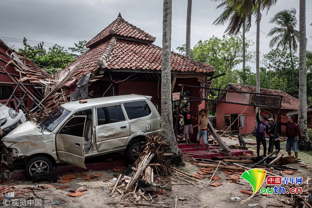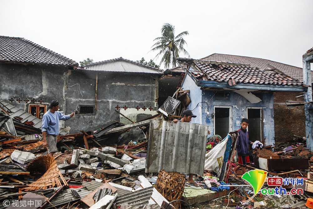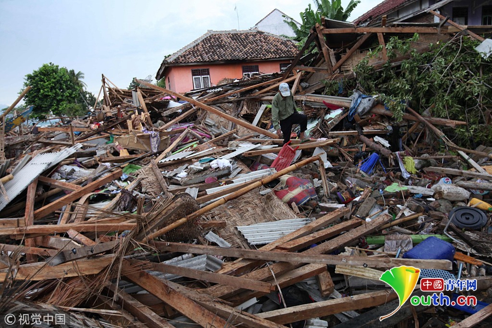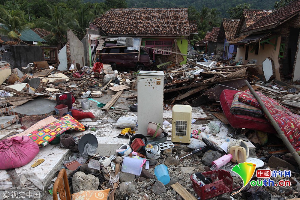 當(dāng)?shù)貢r(shí)間2018年12月24日,印度尼西亞萬丹省卡里塔,現(xiàn)場遍地廢墟,一片狼藉。22日夜間的一次海嘯襲擊了印度尼西亞爪哇島西海岸。印尼國家災(zāi)難機(jī)構(gòu)24日表示,印尼火山引發(fā)的海嘯造成的死亡人數(shù)已經(jīng)上升至373人,1000多人受傷。