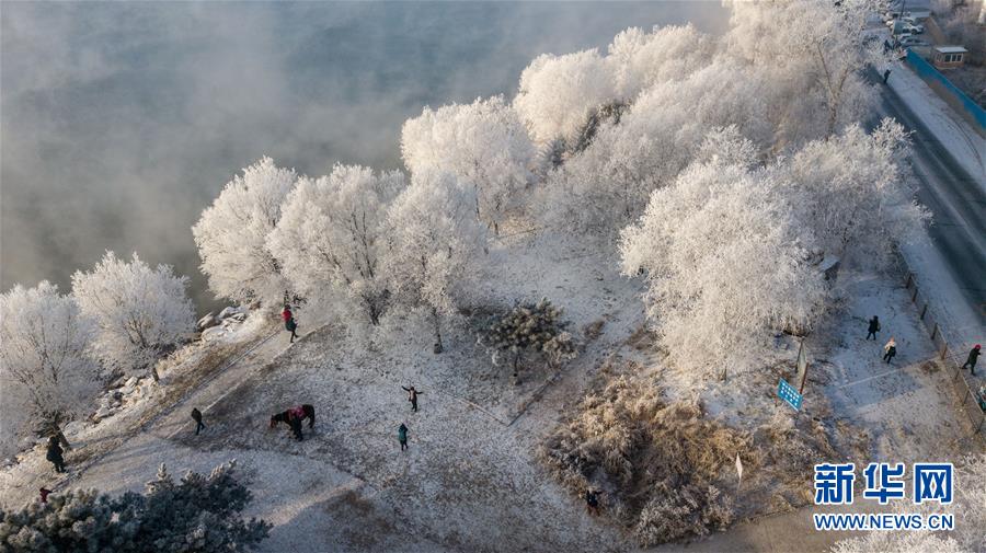 當(dāng)日,吉林省吉林市出現(xiàn)霧凇景觀,松花江畔的樹木仿佛披上了銀色盛裝。