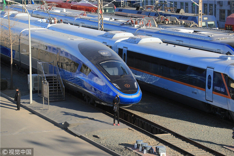 2018年12月24日上午,中國鐵路科技創(chuàng)新成就展在北京國家鐵道試驗中心開幕,一大批中國自主研發(fā)的先進鐵路技術(shù)裝備集中展出,多款復(fù)興號新型動車組首次公開亮相。
