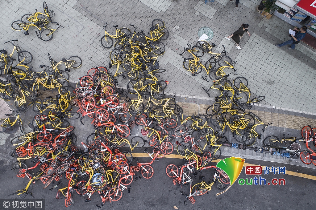 2018年10月24日,廣東東莞,堆積的共享單車(chē)。