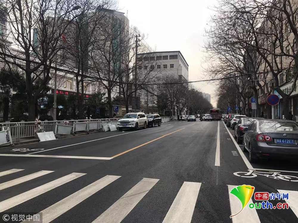 現(xiàn)場(chǎng),文化宮路與友愛(ài)路口附近,新鋪好的路面被劃上了嶄新的行車線和停車位標(biāo)線。從文化宮路和友愛(ài)路交叉口向北,道路東側(cè)的非機(jī)動(dòng)車道被停車位占去后,僅剩下0.8米左右的寬度。同樣在路口南側(cè),道路西側(cè)的非機(jī)動(dòng)車道也被新劃的停車位占去,僅剩不足1米的寬度。