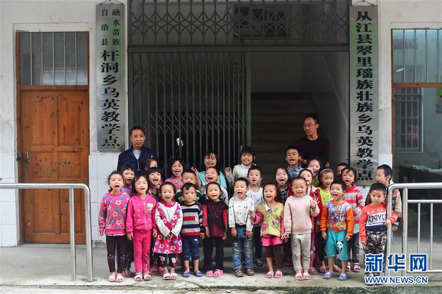 烏英教學點“一??鐑墒^(qū)”,目前有廣西籍學生18名,貴州籍學生9名,廣西貴州籍老師各1名。 烏英苗寨位于黔桂交界的大苗山深處,共有140戶,其中100戶屬廣西柳州市融水苗族自治縣桿洞鄉(xiāng)黨鳩村,40戶屬貴州省從江縣翠里瑤族壯族鄉(xiāng)南岑村。由于地處偏遠,山多地少,經(jīng)濟發(fā)展緩慢,目前整個苗寨還有76戶是貧困戶。 面對艱巨的脫貧任務,當?shù)攸h委政府在努力改善烏英苗寨公共基礎設施的同時,因地制宜,帶動群眾積極發(fā)展特色產(chǎn)業(yè)。從2017年11月至今的一年多時間,這里發(fā)生了很大改變:10戶村民新建了木樓,120多戶完成“三改”(改廁改廚改圈),1名貧困考生考上大學,1戶購買新汽車,4對新人舉行了婚禮,寬帶網(wǎng)絡開始進入貧困戶家庭,苗寨修建了新的辦公大樓和戲臺,安裝了4盞太陽能路燈,購買了40多個新蘆笙,水果種植專業(yè)合作社2018年種植的百香果也開始有所收獲,18戶貧困戶進入脫貧公示階段…… 烏英苗寨600多名黔桂苗族群眾,正在用勤勞的手,拔窮根摘窮帽,一起創(chuàng)造美好的明天。