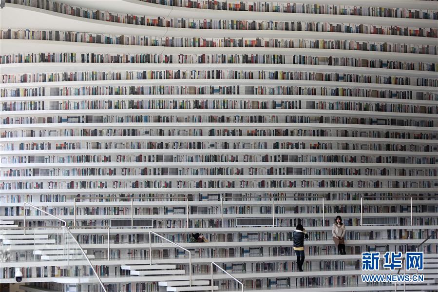 12月27日,讀者在天津濱海新區(qū)圖書館中庭的“書山”上拍照。 濱海新區(qū)圖書館位于天津濱海文化中心,2017年10月1日正式開館,設計立意為“濱海之眼”和“書山有路勤為徑”。圖書館現(xiàn)有藏書60多萬冊,一年多來接待讀者約280萬人次,已成為濱海新區(qū)的文化“新地標”。 新華社記者伍婧丹攝
