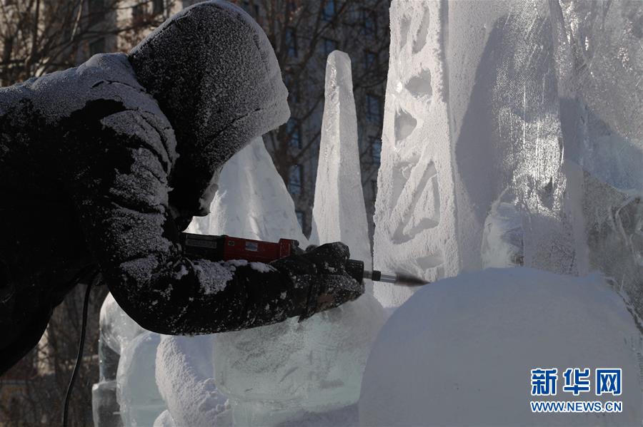 12月27日,選手在比賽中完善冰雕作品。 當(dāng)日,第十六屆黑龍江省大學(xué)生冰雕藝術(shù)設(shè)計創(chuàng)作大賽在哈爾濱兆麟公園落下帷幕,全省高校共有99支隊伍參賽。 新華社記者曹霽陽攝