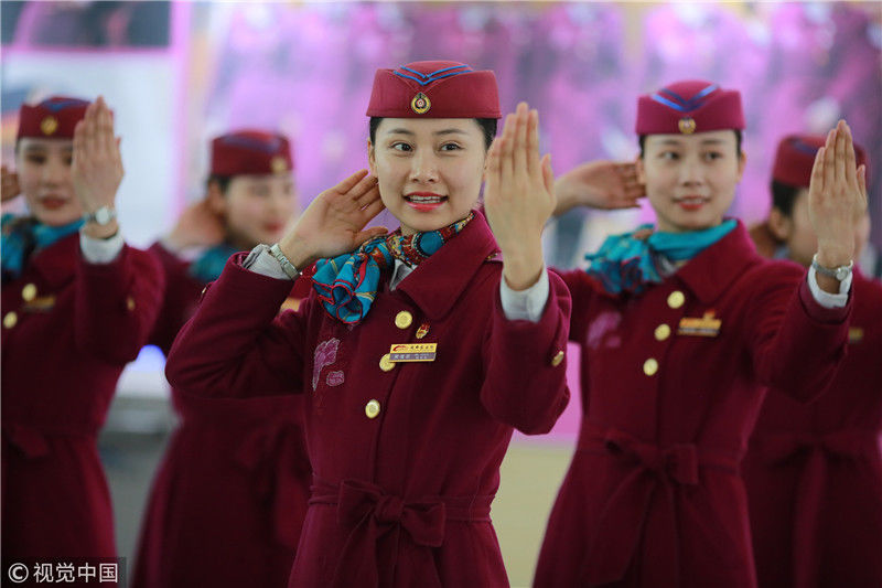 2018年12月27日,四川成都,為備戰(zhàn)即將開通的成雅鐵路,中國鐵路成都局集團有限公司成都客運段動車二隊對成雅動車的乘務(wù)人員進行理論、形體、服務(wù)禮儀等內(nèi)容的培訓(xùn)。