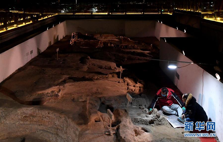 在河南鄭州大河村遺址博物館,科研人員在對(duì)仰韶文化房基進(jìn)行體檢、加固(12月11日攝)。