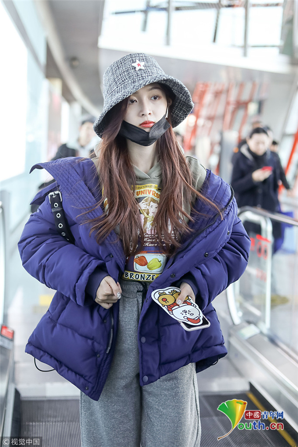 1月1日,北京,吳宣儀現(xiàn)身機場。外帶著漁夫帽的她嘟嘴顯可愛,裹著厚重羽絨服認真過冬超保暖。