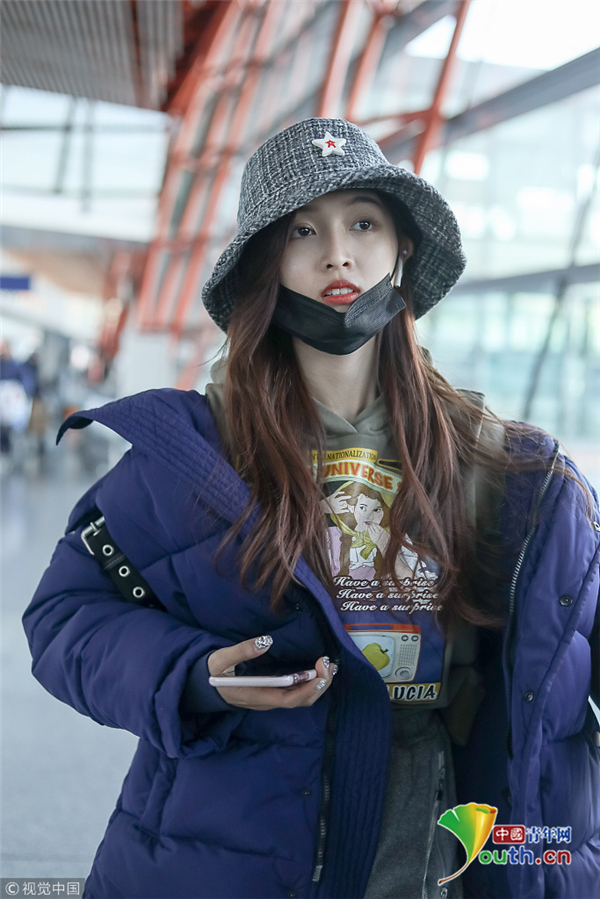 1月1日,北京,吳宣儀現(xiàn)身機(jī)場(chǎng)。外帶著漁夫帽的她嘟嘴顯可愛,裹著厚重羽絨服認(rèn)真過冬超保暖。