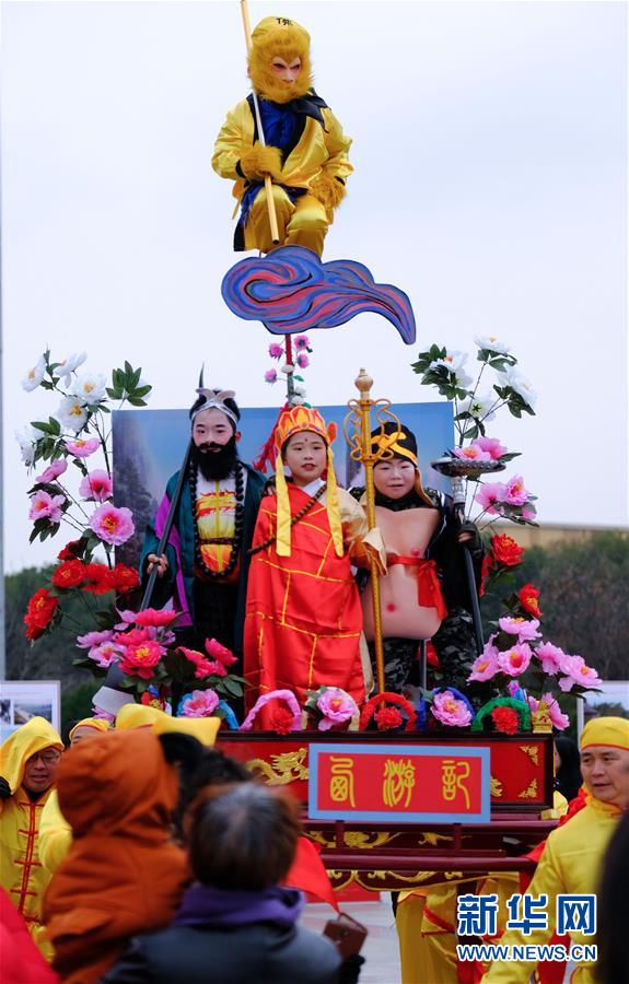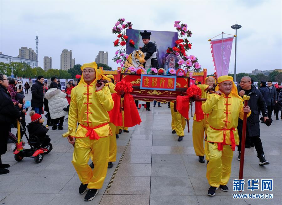 2019年1月1日在展演活動(dòng)上拍攝的“抬閣”表演。2019年元旦,浙江省桐鄉(xiāng)市濮院鎮(zhèn)舉辦新年“非遺文化藝術(shù)節(jié)”活動(dòng),濮院鎮(zhèn)下屬多個(gè)鄉(xiāng)村的傳統(tǒng)美食制作、手工藝品、非遺文化表演等鄉(xiāng)村特色非遺項(xiàng)目在濮院鎮(zhèn)中心廣場進(jìn)行集中展示展演。新華社記者 徐昱 攝