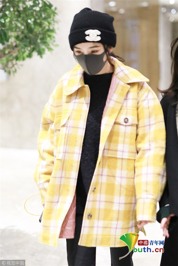 2018年1月6日,上海,楊冪現(xiàn)身某酒店。她戴著帽子口罩,身穿黑色套裝,而外面搭配的奶黃格子外套卻瞬間減齡,明亮又惹眼,無懼寒冬露著纖細(xì)腳踝,依舊是那個很會穿搭的大冪冪。