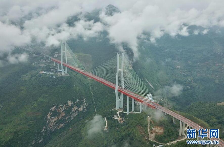 畢都高速公路北盤江大橋是杭瑞高速公路畢都段的控制性工程,位于貴州省和云南省交界處,由貴州省和云南省共建。該橋橋面至江面高差達565米,成為目前世界第一高橋。主橋為鋼桁梁斜拉橋,主跨720米,目前位居同類型橋梁2016年12月29日正式通車。