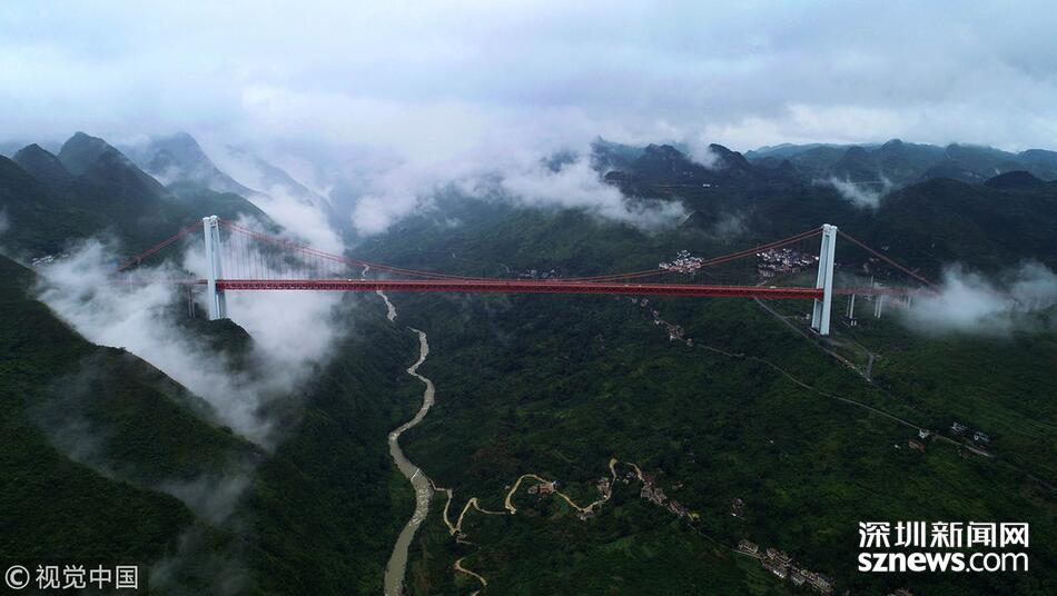【世界第一高懸索橋——四渡河大橋】四渡河特大橋位于巴東縣野三關(guān)鎮(zhèn)四渡河,大橋主跨900米,橋面與峽谷谷底高差達560米,相當于200層樓高,是目前國內(nèi)在深山峽谷里修建的最大跨度懸索橋,比目前世界最高橋法國米約大橋還要高290米,被譽為世界第一高懸索橋。
